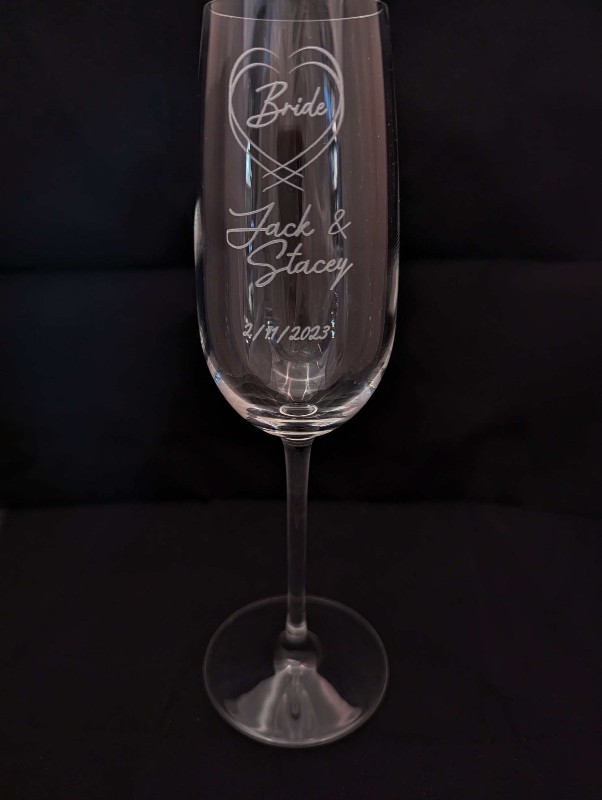 1 Pair of quality personalised Champagne/Sparkling Wine glasses.